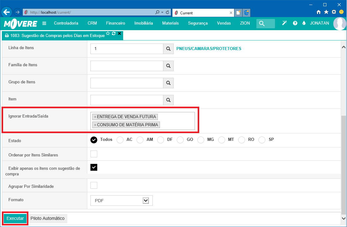 2 - Exibir Apenas os Itens com sugestão de Compra