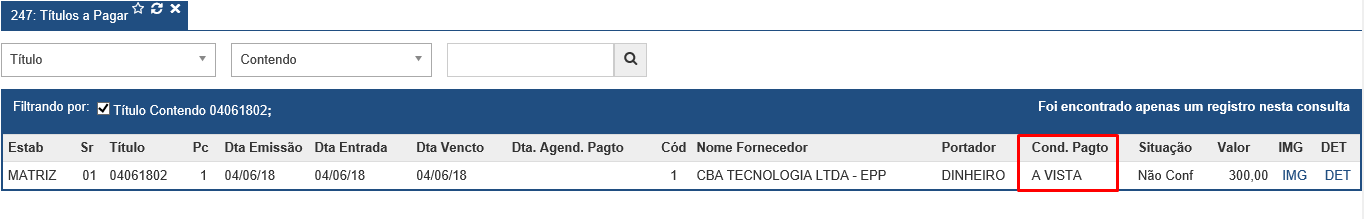 Na rotina o campo será preenchido automaticamente caso na entrada da nota fiscal seja informado o pedido de compra e no pedido tenha sido informado a condição de pagamento.