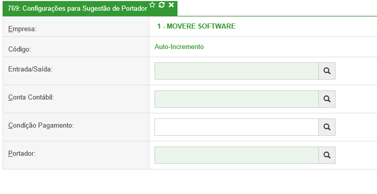 A sugestão do portador é realizada conforme configuração na rotina [R769 - Configurações para Sugestão de Portador]: