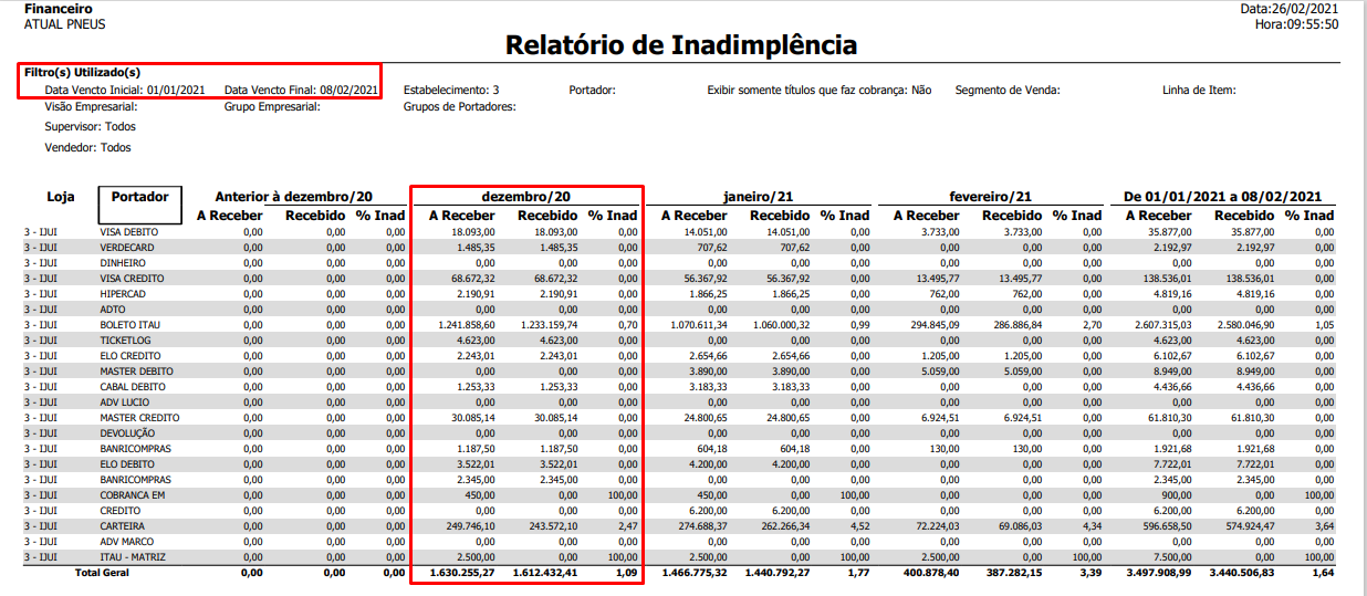 A dúvida é a seguinte, o relatório 351 deveria exibir os valores referentes a dezembro de 2020 sendo que o período não foi filtrado?