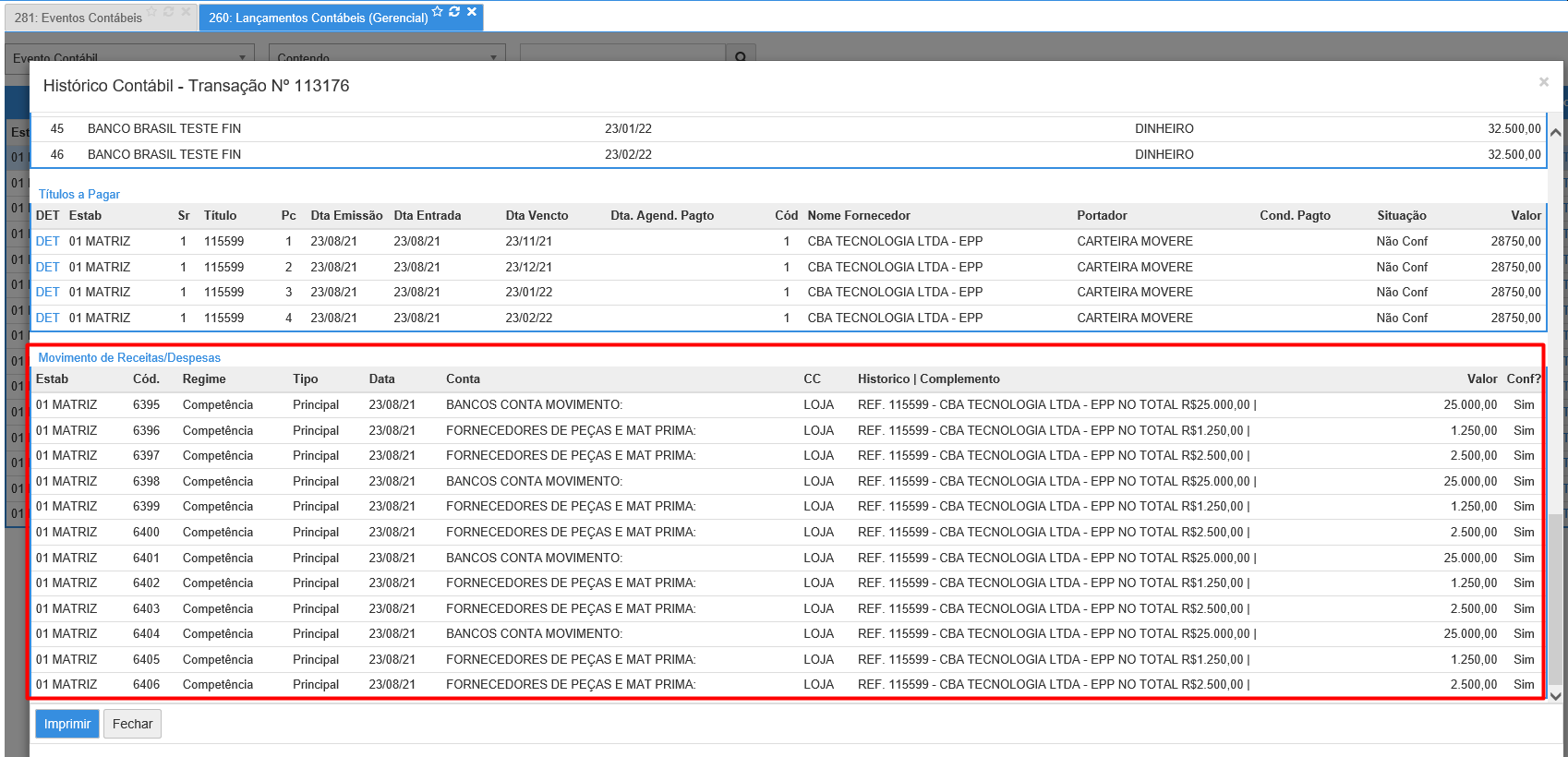 BC: [R281 - Eventos Contábeis] - Contabilização de Despesa : MOVERE Software