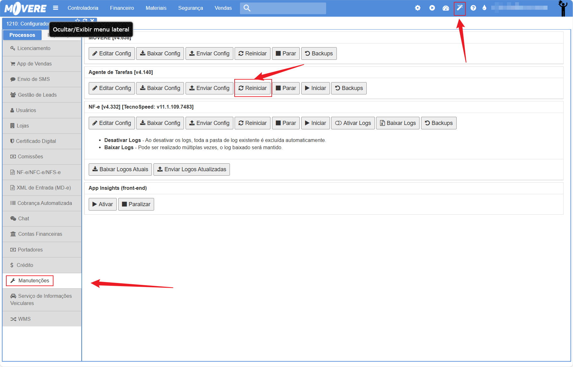 Para cliente on-premises, ou seja, em instalações próprias, o procedimento é um simples reinicio de serviço do windows, de nome "Agente de Tarefas"
