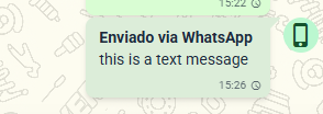 OBS: Ao utilizar a integração por "Coexistência" (utilizando o WhatsApp pelo ComuniCar juntamente com o aplicativo do WhatsApp Business), as mensagens enviadas pelo aplicativo serão destacadas com o nome "Enviado pelo WhatsApp", com um ícone diferente: