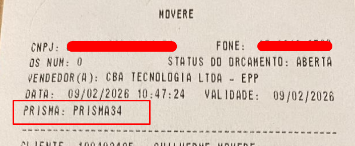 Quando houver um prisma associado à cotação, seu nome será impresso no documento térmicoo.