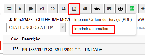 A impressão pode ser realizada ao clicar no botão Imprimir Automático disponível na R11 quando os parâmetros [P372 – Tipo de Impressão de Ordens de Serviço] e [P133 – Tipo de Impressão de Pedido de Venda] estão configurados como "Térmica".